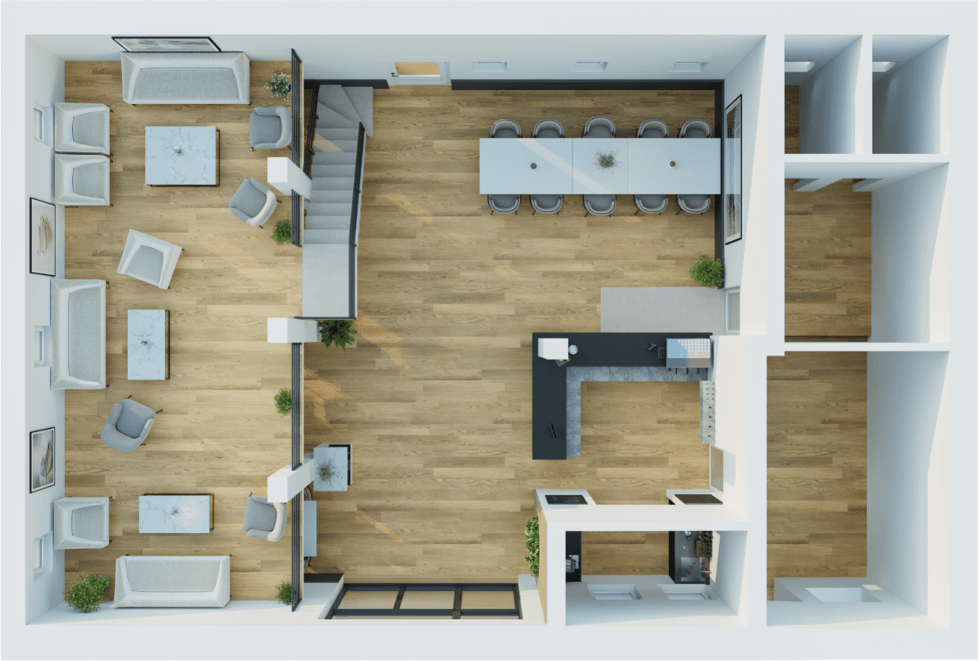 Ebenso kann kundenorientiertes digitales Home Staging oder Visualisierung erarbeitet werden.